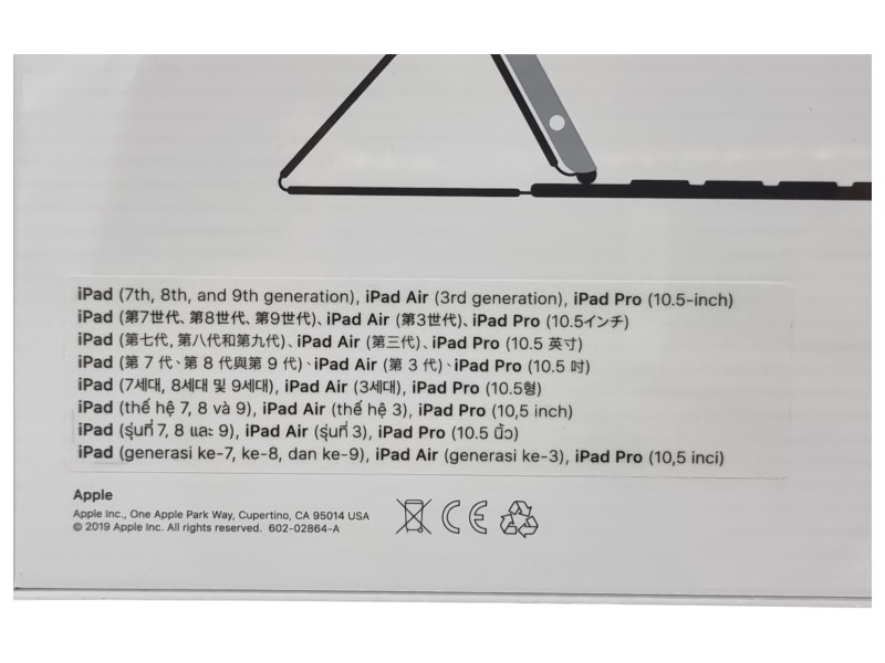 This Apple A1839 iPad Smart Keyboard is in excellent condition, appearing as new. It features a responsive and comfortable typing experience, with a slim, lightweight design that seamlessly integrates with your iPad. The keyboard connects easily via the Smart Connector, providing a reliable and efficient way to enhance your tablet's productivity.