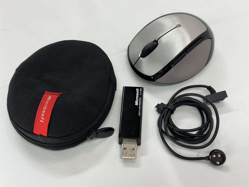 Rechargeable Mouse - Status indicator flashes when batteries need charging. Mouse drops onto the stable, horizontal charging station to activate charging.