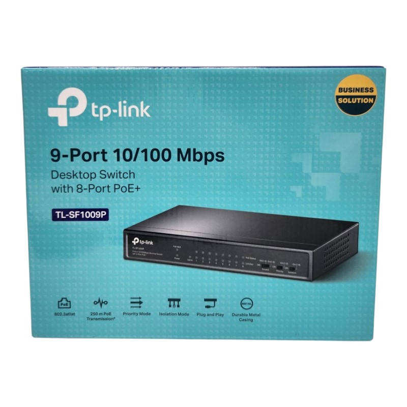 The TP-Link TL-SF1009P is a compact and reliable Ethernet network switch designed for home and small office use. This 9-port switch features a sleek and durable design, making it a practical addition to any workspace. With its 10/100Mbps Ethernet ports, the TL-SF1009P provides a stable and fast network connection, ensuring smooth internet browsing and file transfers. The included power adapter and protective box make this switch easy to set up and maintain, even with minor cosmetic wear. Whether you're expanding your home network or upgrading your office's connectivity, the TP-Link TL-SF1009P is a versatile and efficient choice.
