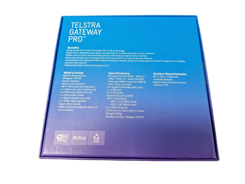 This NETGEAR Telstra Gateway Pro V7610-1TLAUS is a reliable network router that offers seamless connectivity for your home or small office. With its user-friendly interface and robust performance, this router ensures efficient data transmission and a stable internet experience.