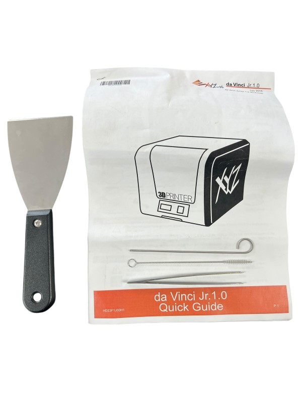 This XYZ DA VINCI JUNIOR 1.0 3D Printer is a reliable and versatile device for your 3D printing needs. With its user-friendly interface and compact design, it's perfect for both beginners and experienced users. The printer comes with a spatula, charger, and manual, ensuring you have everything you need to get started.