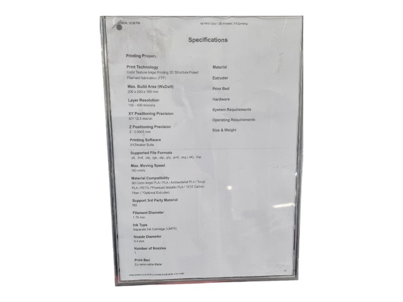 This XYZprinting Da Vinci Colour 3D printer is a versatile and capable device that can bring your creative ideas to life. With its advanced printing technology, you can produce high-quality, vibrant 3D objects with ease. The printer features a user-friendly interface and a range of customisation options, making it a great choice for hobbyists and professionals alike.