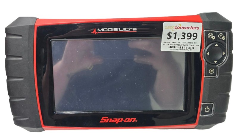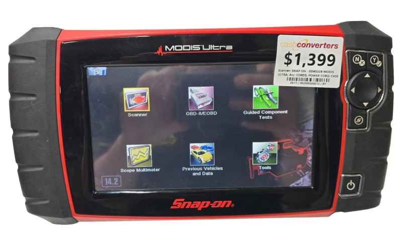 This versatile SNAP ON MODIS ULTRA scanner is a powerful diagnostic tool for automotive professionals. With its intuitive interface and comprehensive coverage, it delivers efficient and accurate diagnostics across a wide range of vehicle systems. The scanner comes equipped with essential accessories, including cords, a power cord, and a sturdy carrying case, ensuring convenient operation and portability.