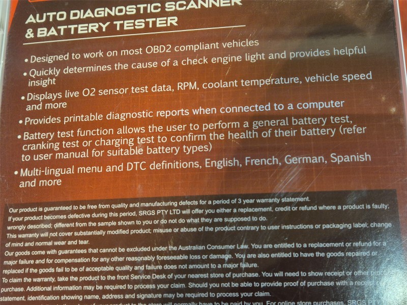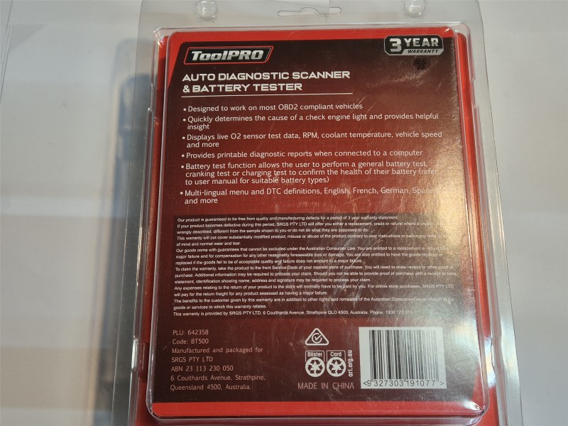 This TOOLPRO BT500 AUTO DIAGNOSTIC SCANNER & BATTERY TESTER is the perfect tool for quickly and accurately diagnosing vehicle issues. With its advanced scanning capabilities, you can easily identify and resolve problems, saving you time and money. Its user-friendly interface makes it simple to navigate, allowing you to get the job done efficiently. Whether you're a professional mechanic or a DIY enthusiast, this scanner is a must-have for your toolbox.