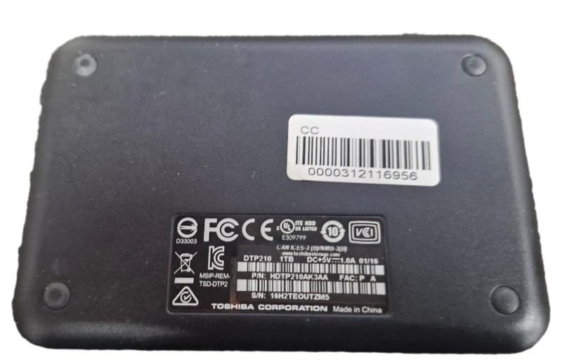 This Toshiba portable hard drive offers reliable storage expansion with 1TB of capacity, making it ideal for backing up important files, photos, and documents. The compact design makes it perfect for on-the-go use, whilst the USB connection ensures compatibility with most computers. The drive shows light cosmetic wear consistent with previous use, but remains fully functional.