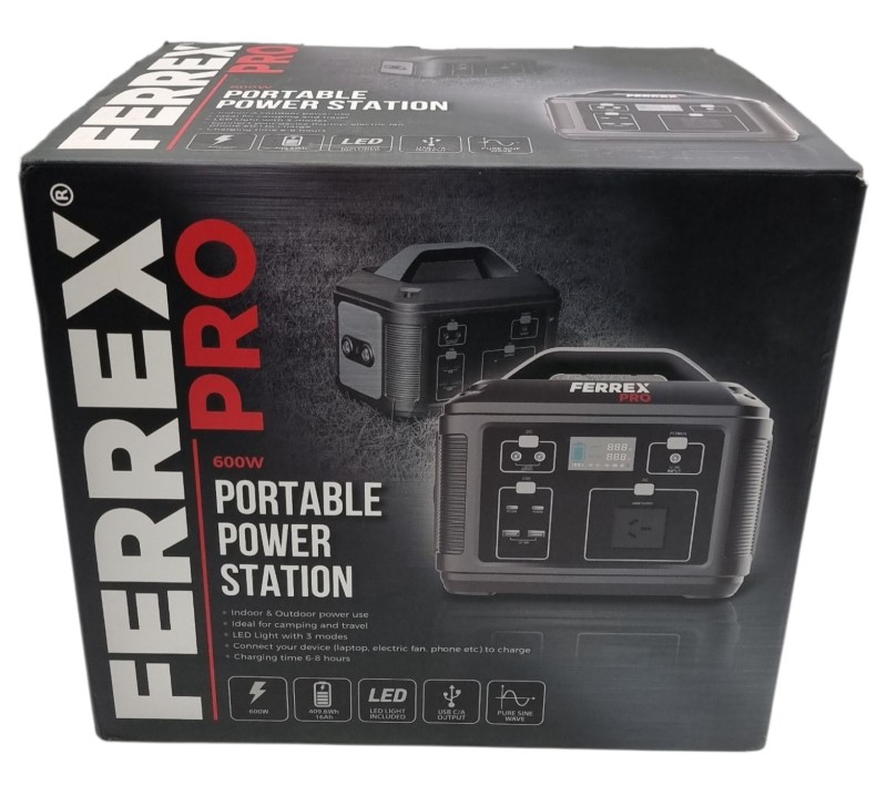 This Ferrex Pro Portable Power Station is a reliable and convenient power bank that can keep your devices charged on the go. With a sleek and compact design, it features a high-capacity battery to provide extended runtime for your smartphones, tablets, and other USB-powered gadgets. Despite some light cosmetic wear, this power bank remains in good working condition and is ready to power your adventures.