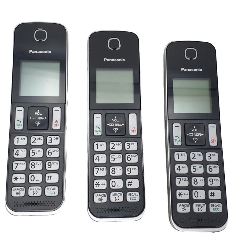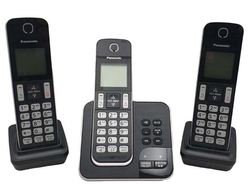3X Handset's, 3X Charging Bases, 3X Power Cables, 1X Phone Line & Manual