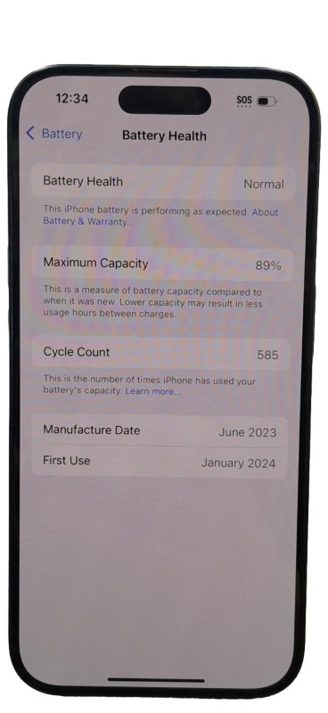 This sleek and powerful iPhone 15 Pro offers impressive performance and functionality. With 128GB of storage, you'll have ample space for your apps, photos, and media. The battery is in good condition, retaining 89% of its original capacity. While it may show light cosmetic wear, the device remains fully functional and ready to serve your daily needs.