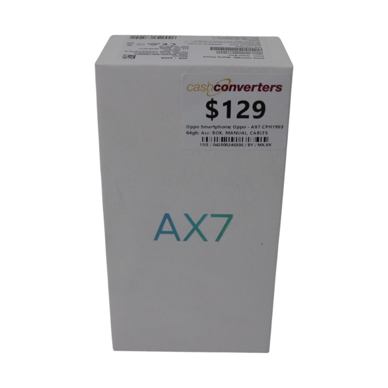 This Oppo AX7 CPH1903 smartphone offers a generous 64GB of storage capacity to meet your everyday needs. With its sleek and compact design, it delivers a seamless user experience. The included box, manual, and cables ensure you have everything you need to get started.