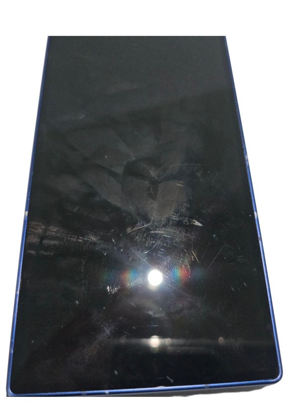 Has scratches on all edges and around camera lens, front screen is also scratched.