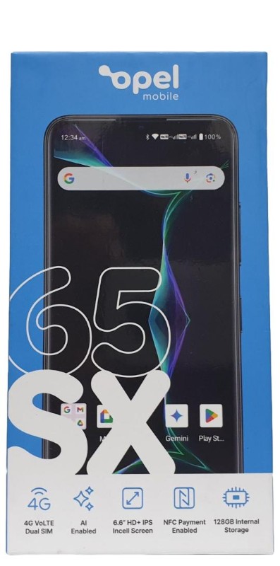 This OPEL MOBILE 65SX smartphone offers impressive storage capacity with 128GB of space. Despite some minor cosmetic wear, this device remains in great condition and comes with a range of useful accessories including the original box, charger, manuals, and a clear case to protect the screen.