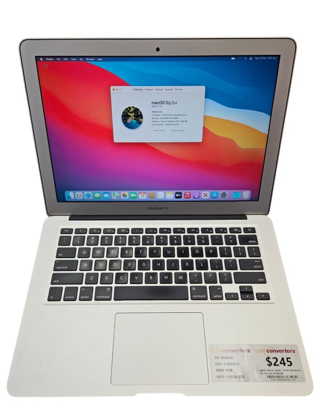 This sleek and lightweight Apple MacBook Air is a reliable and versatile laptop, perfect for everyday tasks and on-the-go productivity. Powered by an Intel Core i5 processor and 4GB of RAM, it delivers smooth and responsive performance, while the 128GB SSD provides ample storage space. With a battery cycle count of 183, this MacBook Air is still going strong. Despite some light cosmetic wear, it remains a capable and well-functioning device.