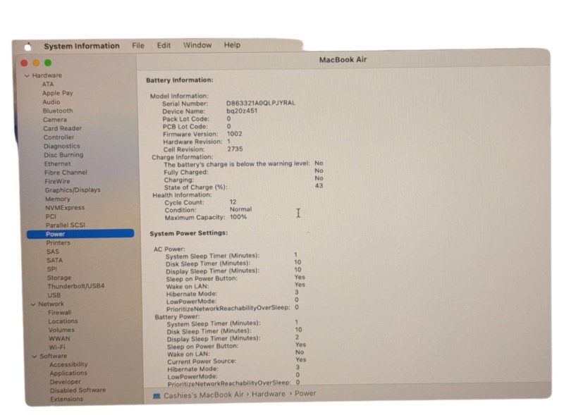 Model Name: Macbook Air 13-Inch 2020 M1