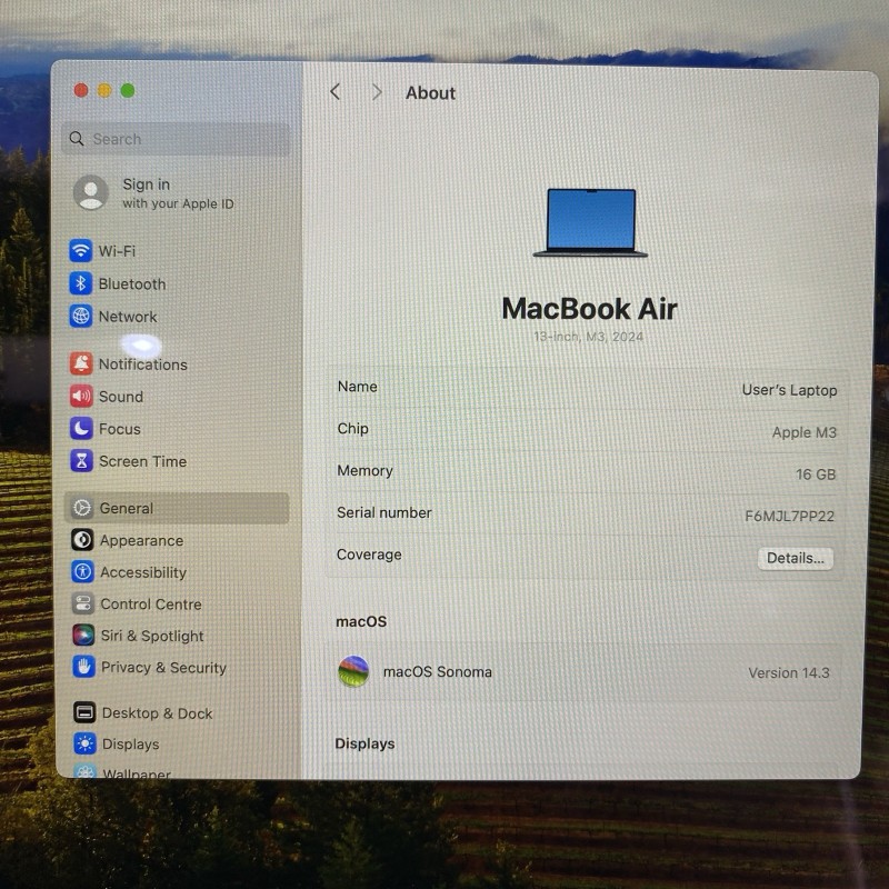 The MacBook shows no signs of usage or damage to the screen and all ports have been cleaned from any debris. Overall functionality has been tested and reset.