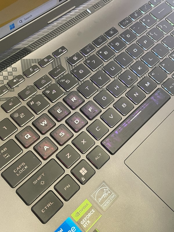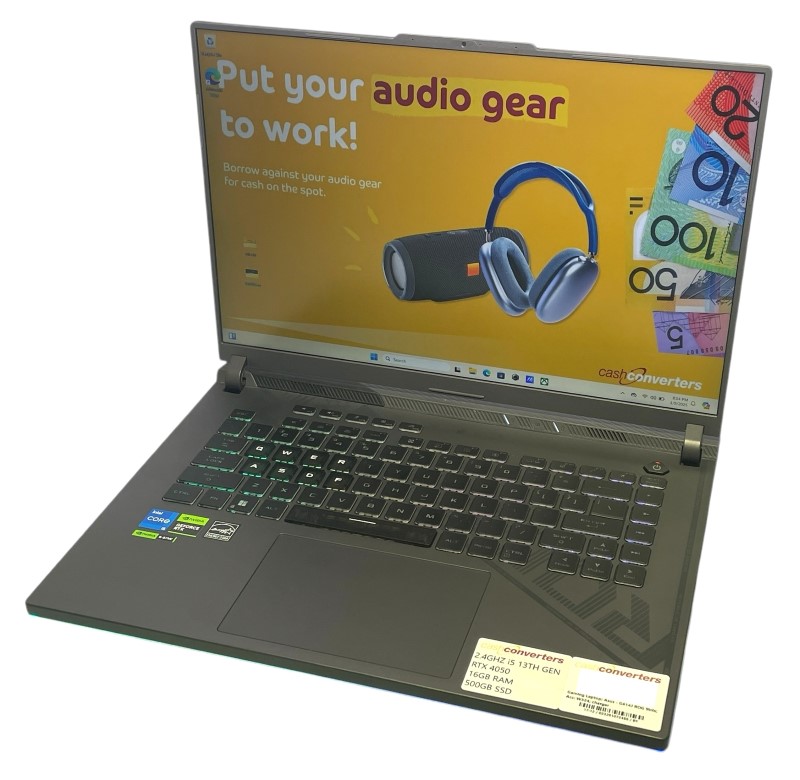 This powerful Asus ROG Strix gaming laptop features a 13th Gen Intel Core i5-13450HX processor clocked at 2.40GHz, 16GB of RAM, and a dedicated NVIDIA GeForce RTX 4050 graphics card. With a 500GB hard drive, this device offers ample storage for your gaming library and other files. The screen is in good working condition with no scratches, while the outer casing has some light marks but no heavy scratches. The edges and outputs show some surface wear, and the bottom has light scratches from use. The laptop has been factory reset, and basic functions have been tested.