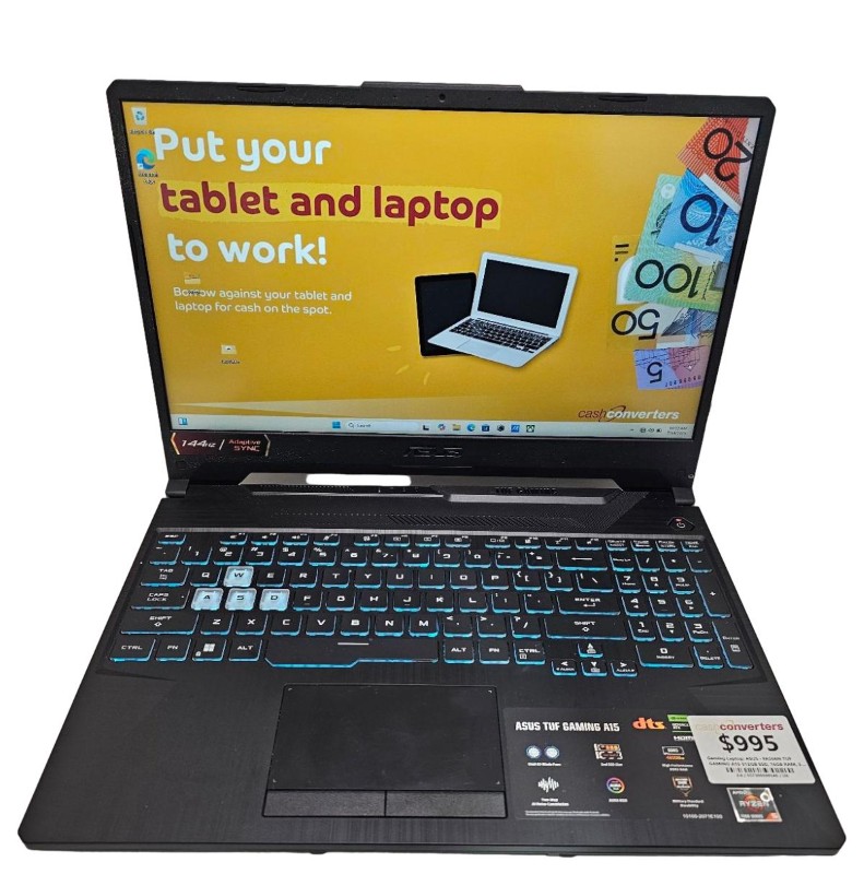 This ASUS TUF GAMING A15 laptop is a powerful and versatile gaming machine. Featuring a AMD RYZEN 5 CPU clocked at 3.3GHz, 16GB of RAM, and a 512GB SSD, it delivers impressive performance for gaming, productivity, and multitasking. The dedicated graphics card ensures smooth and immersive gaming experiences. With only minor cosmetic wear, this laptop is in great condition and ready to take your gaming to the next level.