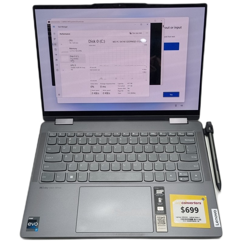 This Lenovo YOGA 7 laptop features a powerful 13th Gen Intel Core i7 processor clocked at 2.20GHz, paired with 16GB of RAM and a 512GB solid-state drive for fast performance and ample storage. The sleek and versatile design allows for flexible usage, whether you need a laptop for work, entertainment, or on-the-go productivity. With only very minor cosmetic wear, this YOGA 7 is in excellent condition and ready to take on your daily tasks.