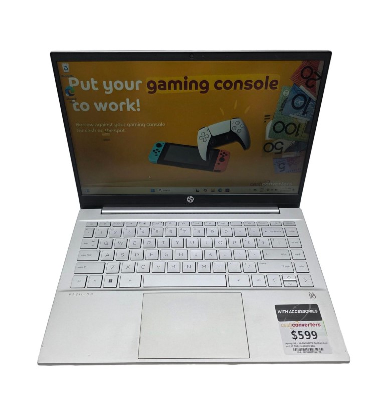 This HP Pavilion 14-DV2030TX laptop is a capable and versatile machine, featuring a powerful Intel Core i7-1255U processor, 16GB of RAM, and a 512GB SSD for fast storage and performance. The dedicated graphics card ensures smooth visuals for everyday tasks and light gaming. While the laptop shows some signs of use, including scuffs on the screen and visible scratches, it remains a reliable and functional device.