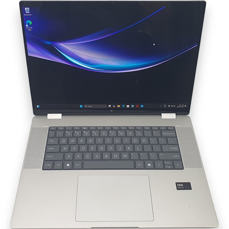 This versatile HP Envy 360 2-in-1 laptop offers impressive performance and a stunning 16" diagonal 2.8K OLED touch display. Powered by an Intel Core Ultra 7 Processor and 32GB of RAM, it delivers smooth multitasking and responsive computing. With a 1TB hard drive, you'll have ample storage space for your files, photos, and media. The 2-in-1 design allows you to seamlessly transition between laptop and tablet modes, making it a flexible choice for work, entertainment, and on-the-go use. This pre-owned device shows very minor cosmetic wear, ensuring it remains in great condition.