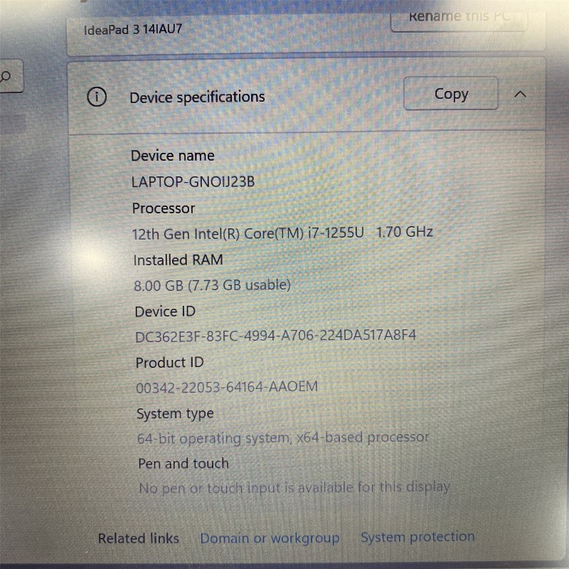 CPU Type: 12Th Gen Intel(R) Core(T) i7-1255U