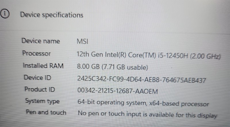 CPU Type: 12Th Gen Intel Core i5-12450H 2.00GHz