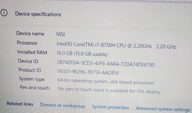 CPU Type: Intel Core i7 2.20GHz 8th Gen