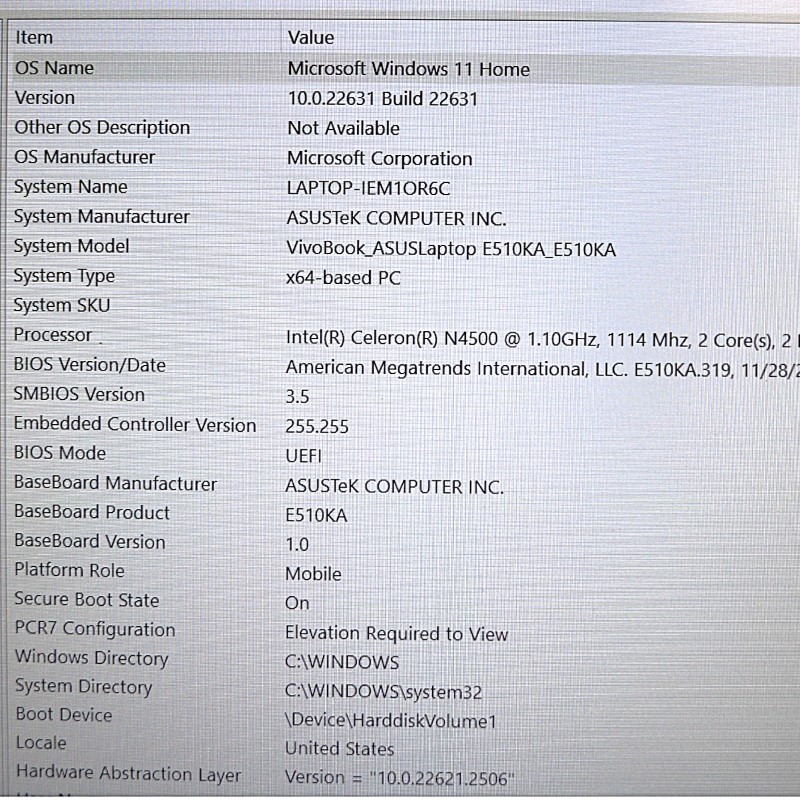 CPU Type: Inte Celeron N4500 @ 1.10GHz