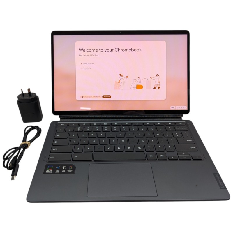 The IP DUET 5 CHROMEBOOK is a versatile and portable laptop that offers a seamless computing experience. With its sleek design and powerful performance, this device is perfect for work, study, or entertainment. The included keyboard, case, and power cable ensure you have everything you need to get started.