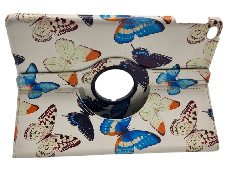 This stylish tablet case is designed specifically for the iPad Air 2. It offers reliable protection for your device while allowing full access to all ports and buttons. The case features a sleek, minimalist design that complements the iPad's aesthetic. With its lightweight construction, you can easily carry your tablet with you on the go. Although the case shows some light cosmetic wear from previous use, it remains in good functional condition.