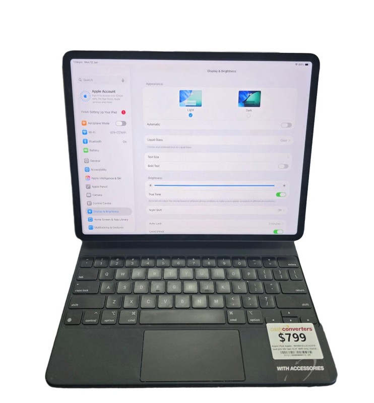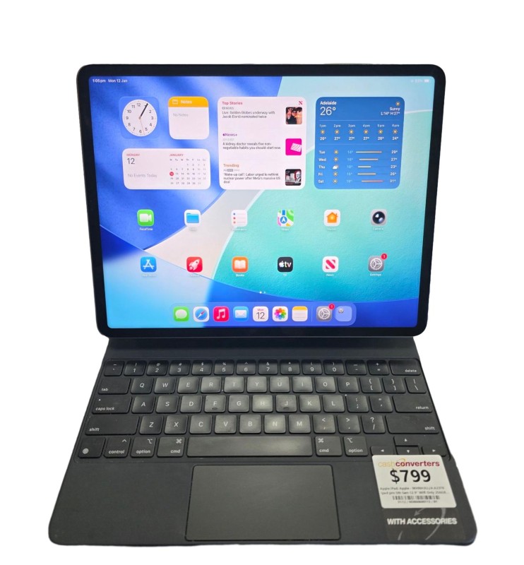 This sleek and powerful Apple iPad Pro 5th Generation 12.9" tablet delivers exceptional performance and versatility. With a stunning 12.9" Liquid Retina display, the iPad Pro offers vibrant visuals and smooth scrolling. Featuring 256GB of storage, this tablet provides ample space for your apps, media, and files. Included are the Magic Keyboard and the original charger brick and cord, enhancing your productivity and convenience.