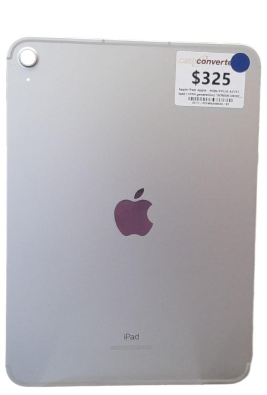 This iPad 10th Gen *Cellular & Wi-Fi* model features a 64GB storage capacity and is unlocked for use with any carrier. However, please note that there is a screen defect with this device. Despite its functional issues, this tablet could still be a cost-effective option for those in need of a secondary device or for parts/repair.