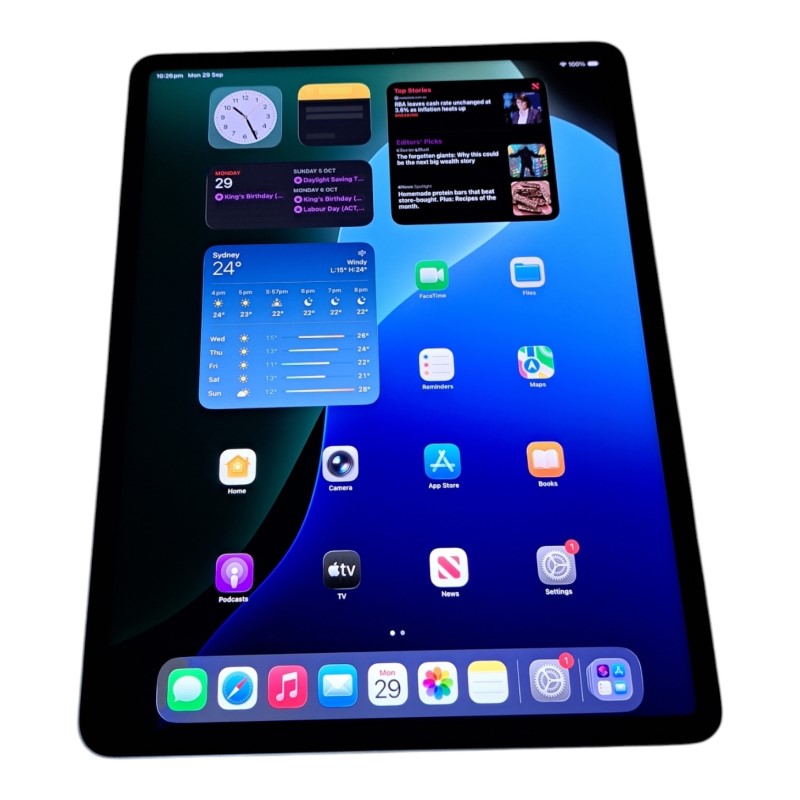 This iPad Pro 5th Gen (Wi-Fi, 12.9") is a powerful and versatile tablet that offers a stunning 12.9-inch display, ample 128GB storage, and seamless wireless connectivity. Despite its light use, the device remains in excellent condition with only minor cosmetic wear. Included in the package are the original box and charger, ensuring you have everything you need to get started.