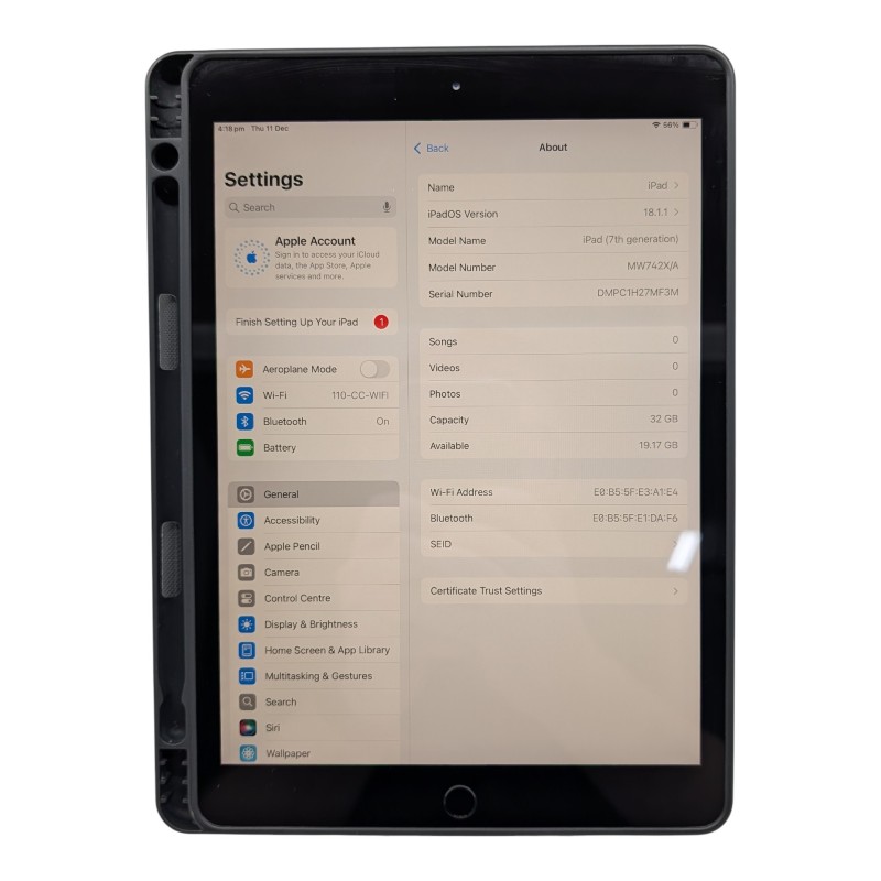 Apple iPad 7th Gen A2197 Black Apple iPad