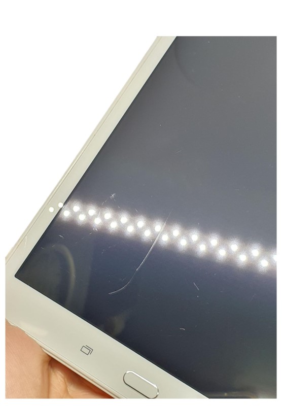 Condition: This item is in used condition showing visible cosmetic wear. screen has a hairline crack on the bottom left corner of the screen and few small light scratches which are not visible when screen is on but slightly noticeable when off. Body shows no major visible damage then a few light scratches towards the base of the tablet.