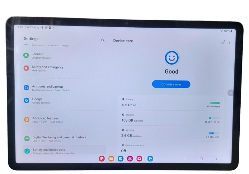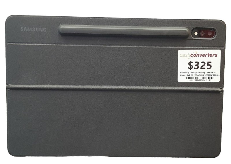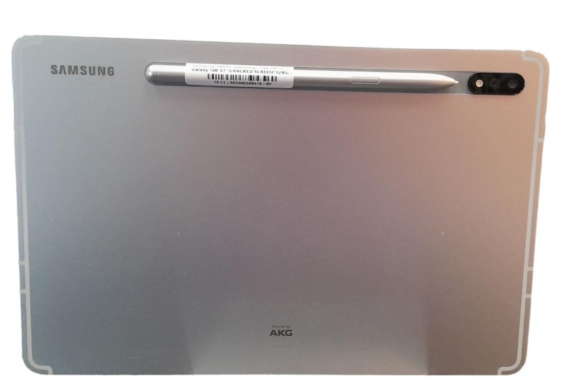 This Samsung Galaxy Tab S7 tablet offers a versatile and portable computing experience. With a 128GB storage capacity, you can store a wealth of files, photos, and media. The tablet features a back cover and a pen accessory, providing added functionality and protection. However, please note that the screen is cracked, which may affect the overall usability of the device.
