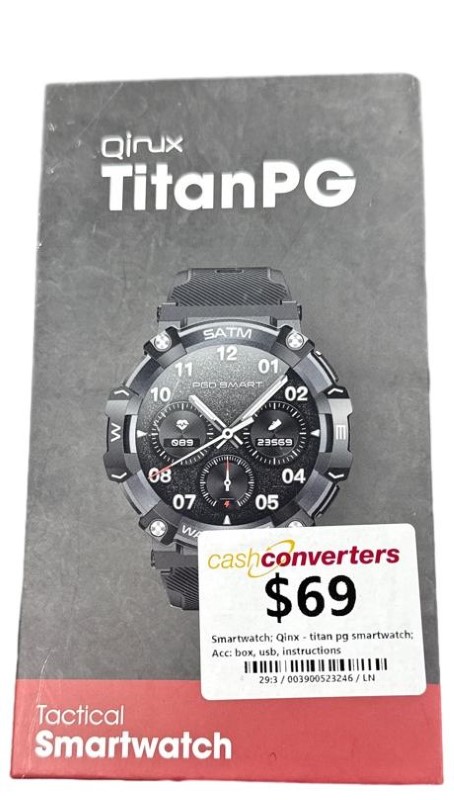 This Qinx Titan PG smartwatch is a versatile wearable device that seamlessly integrates with your digital lifestyle. With Wi-Fi connectivity, you can stay connected on the go. The sleek plastic band provides a comfortable and durable fit. Despite some very minor cosmetic wear, this smartwatch remains in excellent condition and ready to enhance your daily routine.
