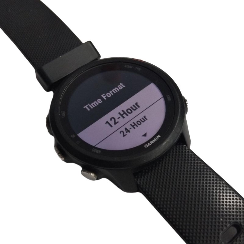 This GARMIN FORERUNNER 245 MUSIC smartwatch is a versatile and feature-packed wearable device. It offers advanced fitness tracking, including heart rate monitoring, GPS, and VO2 max estimation. The built-in music storage and playback capabilities allow you to enjoy your favourite tunes on the go. With its sleek and lightweight design, this smartwatch is perfect for active lifestyles, providing reliable performance and convenience.