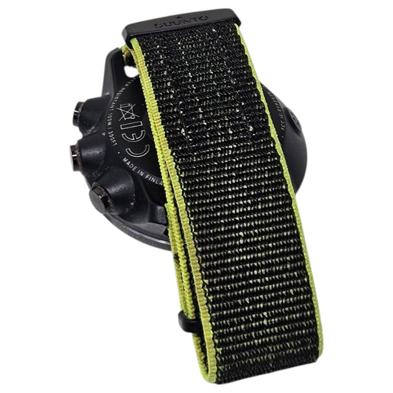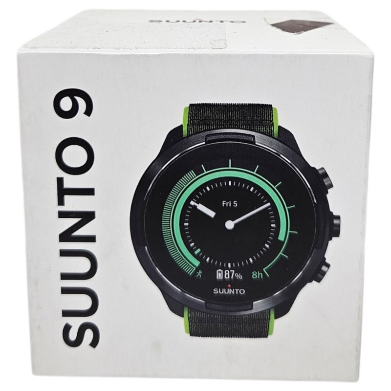 This Suunto 9 Gen 1 Baro Lime smartwatch is a versatile and durable wearable device. It features a barometric altimeter for precise elevation tracking, as well as comprehensive fitness and training features to support your active lifestyle. With only very minor cosmetic wear, this smartwatch is in excellent condition and ready to accompany you on your next adventure.