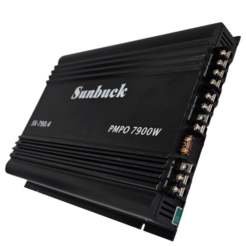 This powerful 4-channel Sunbuck PMPO 7900W car amplifier delivers exceptional audio performance. Featuring a robust MOSFET design, it provides clean and distortion-free sound to elevate your in-car entertainment experience. With its versatile configuration, you can tailor the output to suit your specific audio setup and preferences.