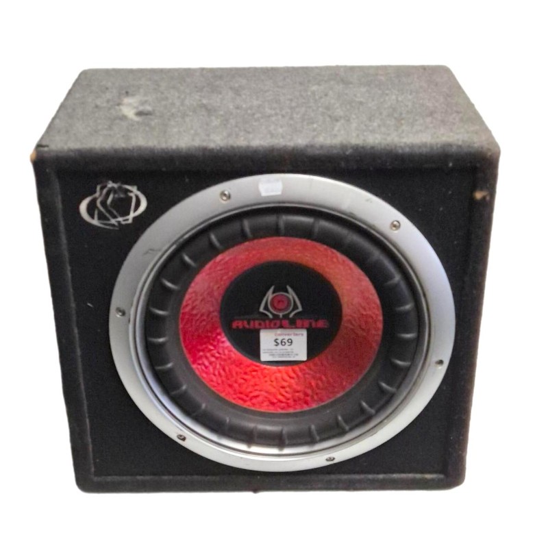 This powerful 12" audioline subwoofer delivers exceptional bass performance for your vehicle's audio system. Its large size provides deep, rumbling low-end frequencies to enhance your music experience. Despite being a pre-owned item, this subwoofer remains in working condition and has been well-used, ensuring reliable performance.