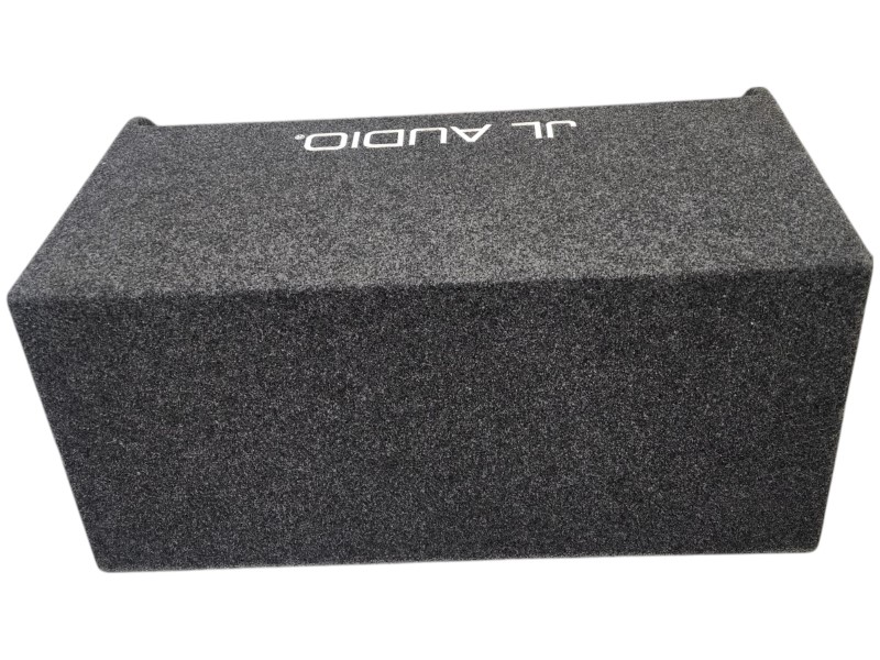 Finish: Dark gray, high-grade automotive carpet with "JL AUDIO" embroidery on the top edge and "Slot-Ported BassWedge" embroidered on the port mouth.