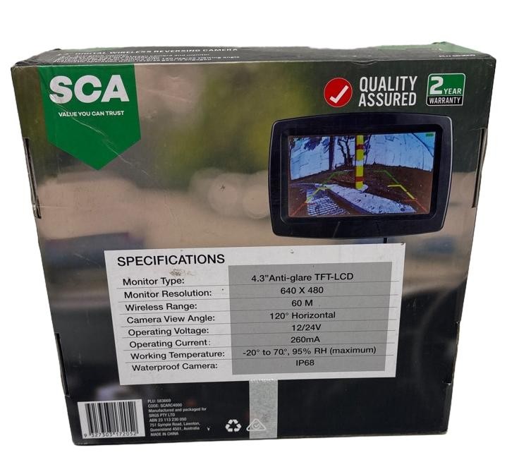 This compact digital wireless reversing camera from SCA offers a 4.3" display to provide a clear view behind your vehicle. Designed for easy installation, it seamlessly integrates with your car's existing systems to enhance visibility and safety when reversing. With its wireless connectivity, you can enjoy a clutter-free setup and unobstructed visibility.