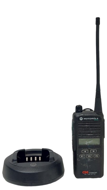 This Motorola CP476 CB radio is a reliable and well-used communication device suitable for cars, motorbikes, and other vehicles. With its compact design and straightforward controls, it provides clear and consistent performance. The included charger ensures convenient power management on the go.