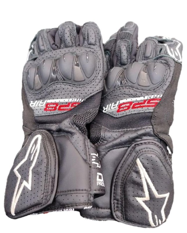 This pair of ALPINESTAR SP8 AIR motorcycle gloves has been well used but remains in working condition. Crafted with quality materials, they offer protection and comfort for riders. The breathable mesh panels help to keep your hands cool, while the reinforced palm and knuckle areas provide essential shielding. These gloves are a practical choice for your next ride.