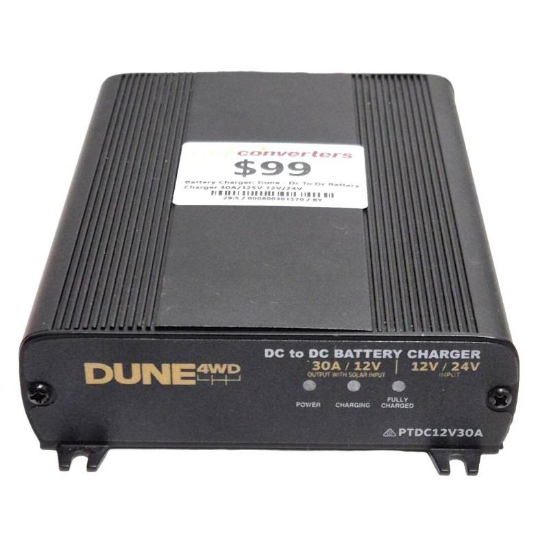 This robust Dune DC to DC Battery Charger is a versatile power solution for your vehicle. Capable of charging 12V or 24V batteries at up to 30A, it ensures your battery stays in peak condition. With its compact and durable design, this charger is a reliable companion for your car, motorbike, or other vehicle.