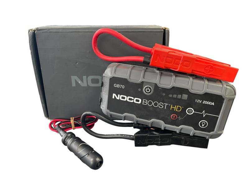 This powerful NOCO GB70 UltraSafe Boost HD Lithium Jump Starter is a versatile and reliable tool for getting your vehicle back on the road. With a 2000 Amp peak current, it can quickly and safely jump-start a dead battery, even in extreme conditions. Its compact and durable design makes it easy to store and transport, ensuring you're always prepared for unexpected battery issues.