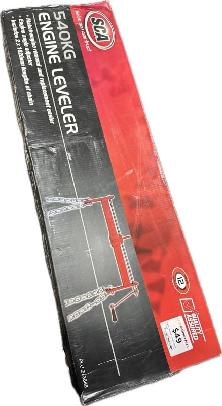 This robust engine hoist from SCA is capable of safely lifting and lowering engines up to 540kg. Featuring a sturdy steel construction, it provides a stable and secure platform for engine removal, installation, and maintenance tasks. With its adjustable height and swivel design, this versatile tool allows for precise positioning and easy maneuvering of heavy engine components.