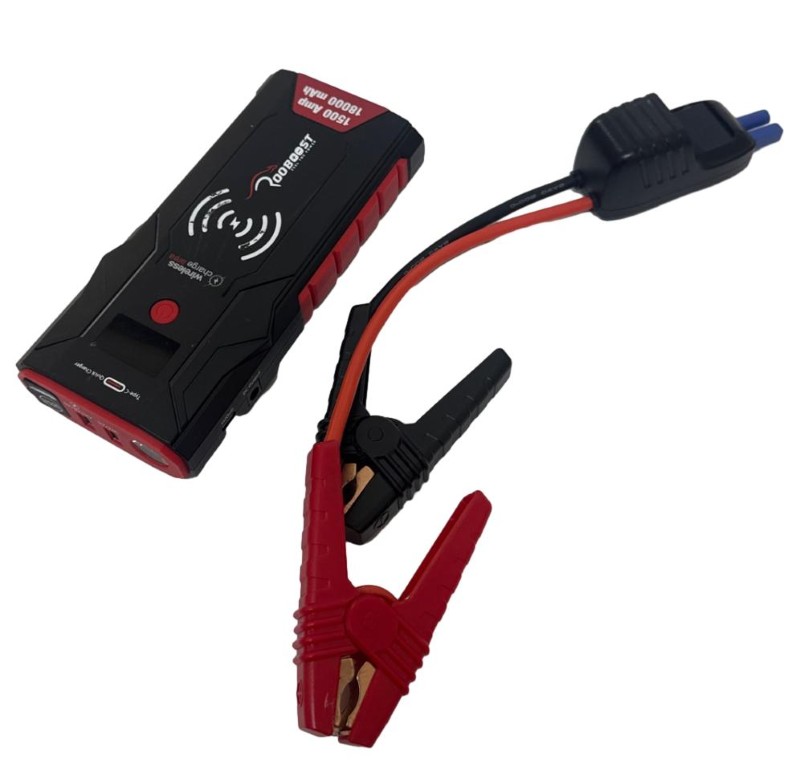 This Rooboost PRO-1500A jump starter is a reliable and compact device designed to provide a quick and convenient way to start your car or motorbike. With its powerful battery and user-friendly features, it's an essential tool for any vehicle owner. The jump starter is compact and easy to store, making it a practical addition to your roadside emergency kit.