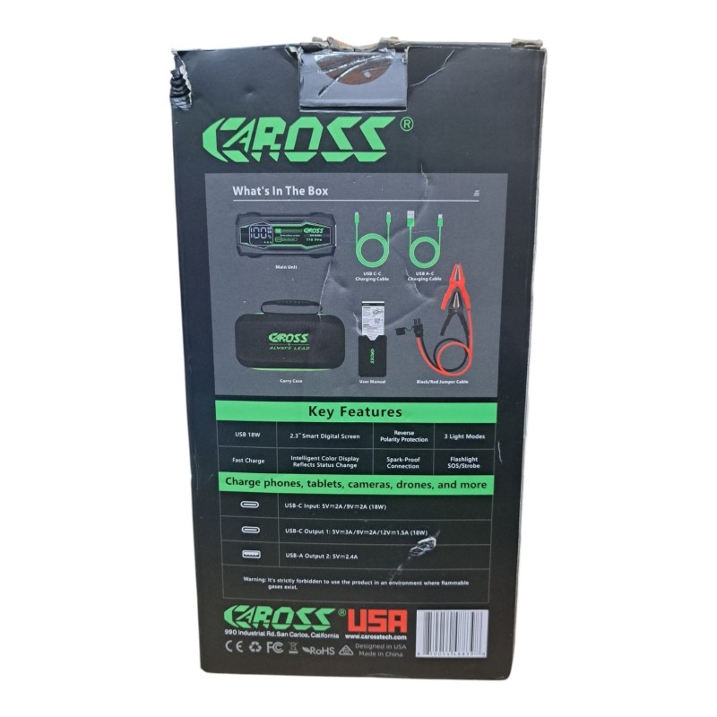 This robust jump starter from caross is a reliable companion for your car or motorcycle. The t18 pro model is designed to provide a powerful boost when your battery is flat, allowing you to get back on the road quickly and easily. With its durable construction and user-friendly features, this jump starter is a practical addition to any vehicle owner's toolkit.