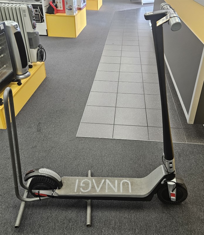 This UNAGI E500 electric scooter offers a sleek and modern design with impressive performance. Powered by a robust motor, it provides a smooth and efficient ride, making it an ideal choice for urban commuting. The included charger ensures you can keep the scooter ready to go whenever needed.